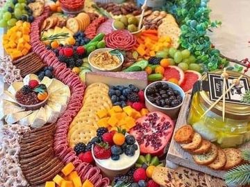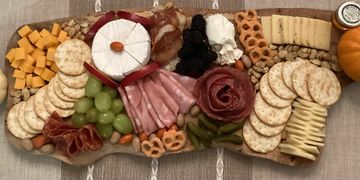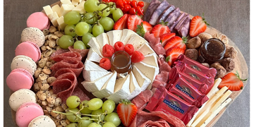 A stunning display of cheeses, meats, fruits, and accompaniments for 10 or more guests