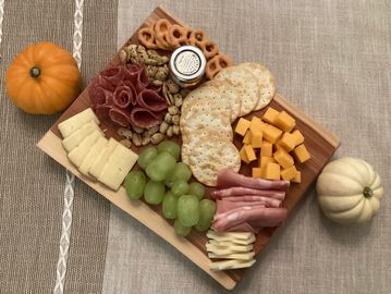 A variety of cheeses, meats, fruits, and crackers, ideal for 4–6 guests